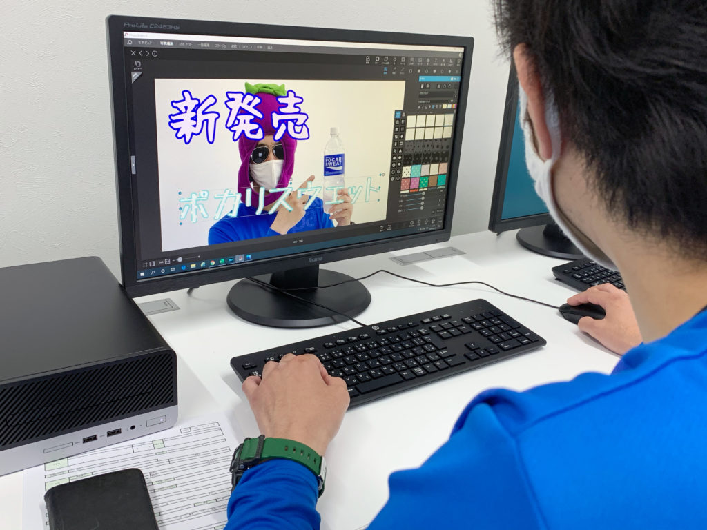 動画撮影チームが撮影した動画データを中心にパソコン上で映像編集を行います。